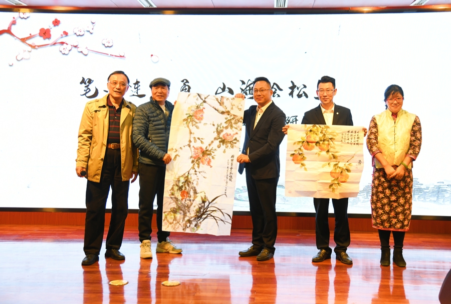 作品捐赠仪式,沪尚墨缘书画家向宁波松兰山海景大酒店捐赠一批精心创作的墨宝,助力松兰山文化收藏;