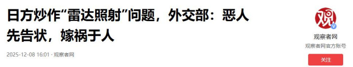 12月7日,日本防卫省首次集中披露辽宁舰航母编队在宫古海峡以东海域的活动情况泸深配,并刻意渲染所谓“异常动向”,紧接着炒作歼15舰载机对自卫队战机实施雷达照射,试图把中方正常远海演训塑造成“危险行为”。