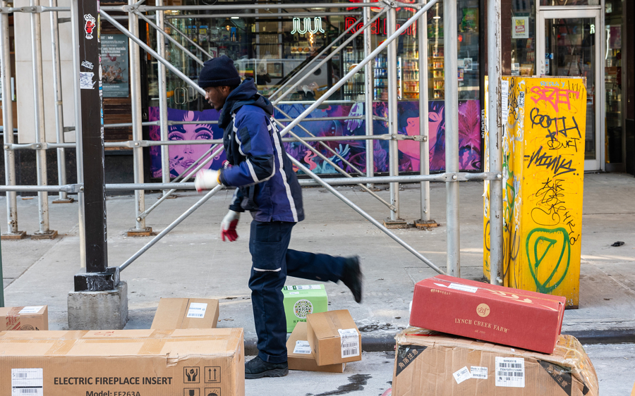 美国纽约,一名男子在曼哈顿51配资网送货。