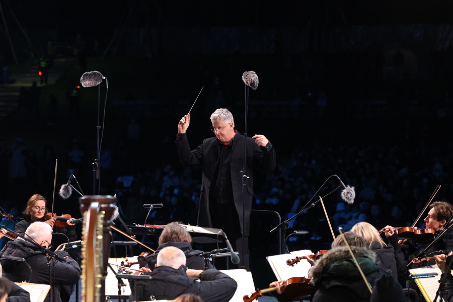 当晚的音乐会上,指挥家斯蒂芬·贝尔执棒哈雷管弦乐团,并携手帕格尼尼小提琴金奖获得者、中国小提琴家宁峰共同呈现。哈雷管弦乐团拥有160多年的历史,有“英国音乐活化石”之美誉,此次是乐团时隔9年再度访华,此次乐团为“双子山”特色户外舞台量身定制的曲目,既有英伦的典雅克制,又有德奥的深邃与俄罗斯的炽烈。