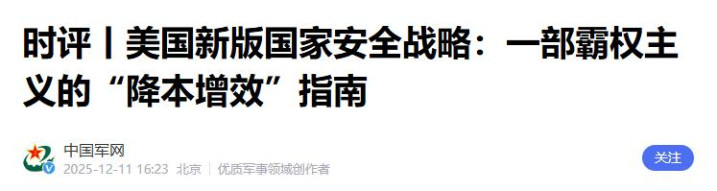 时评丨美国新版国家安全战略:一部霸权主义的“降本增效”指南——中国军网